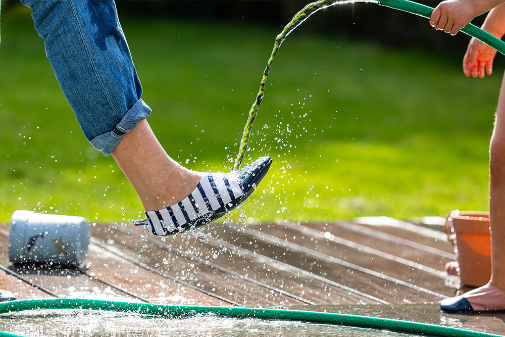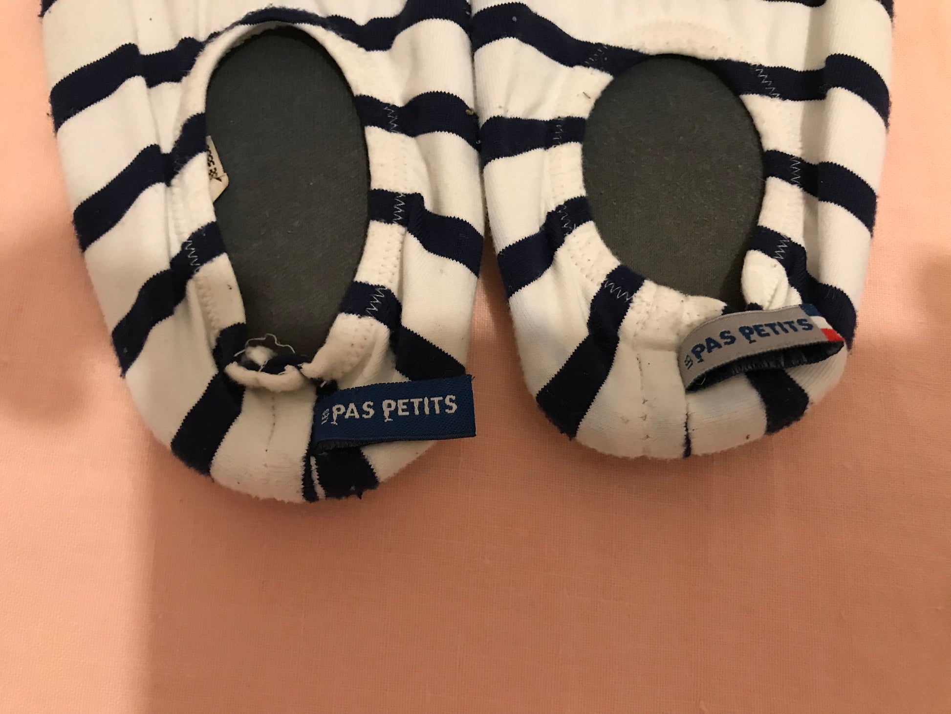 Le traditionnel modèle Les Petits Marins est un incontournable chez Les Pas Petits. Appréciés par les petits et les grands, le chausson souple Les Petits Marins aime l’eau et les vacances. Recommandés par de nombreux spécialistes (kiné, ostéo, podologues…). Tissu Marin 100% fabriqué en France ! Les Pas Petits sont des chaussons souples adaptés pour les premiers pas de bébé notamment. Ces chaussons sont adaptés au développement de la marche et de la motricité de bébé. Parfaits pour l’intérieur et l’extérieur, équipé d’un cuir nautique antidérapant.  Aussi disponible en taille adulte.